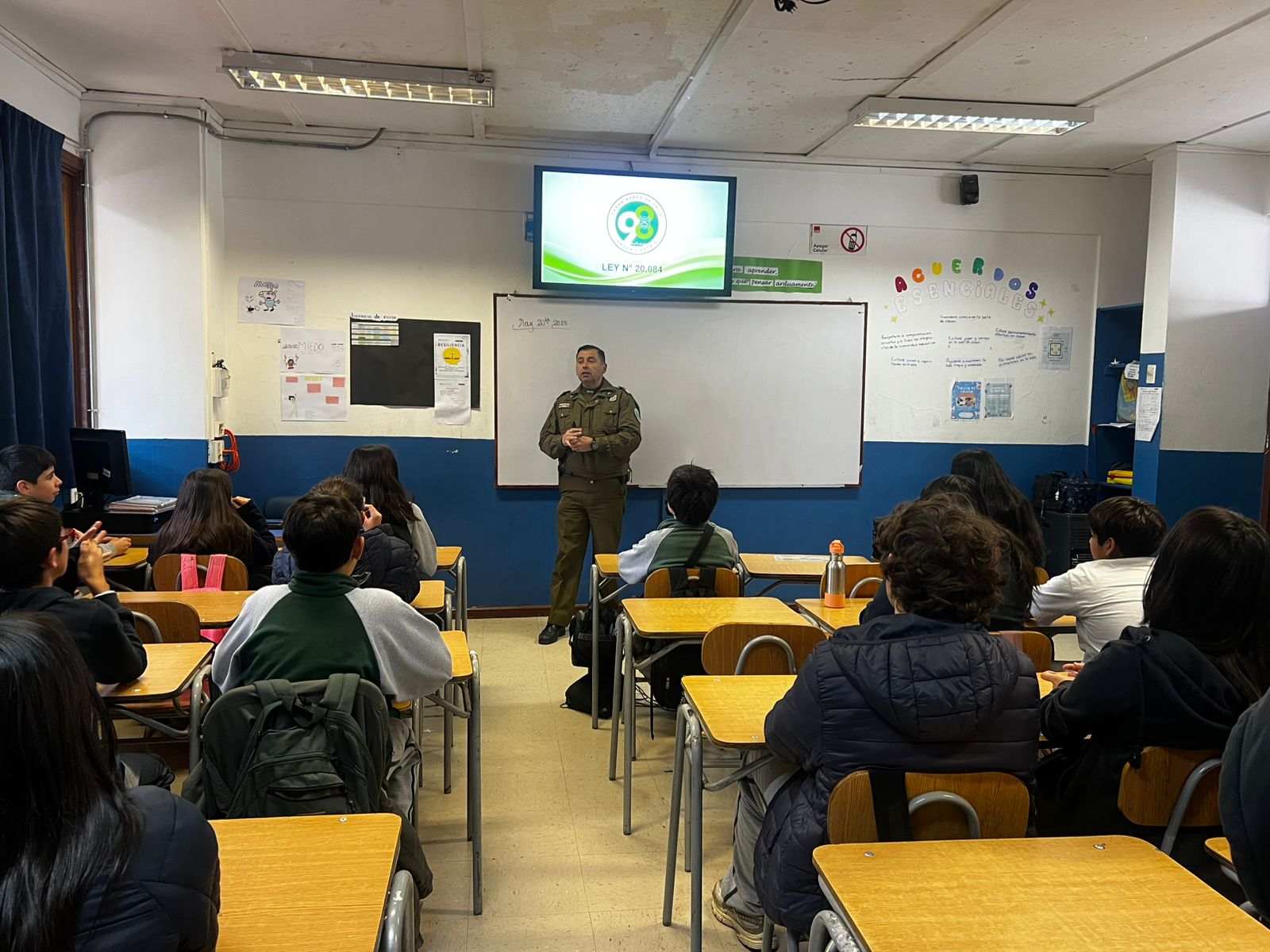 En el marco de las acciones formativas para fomentar la responsabilidad y el respeto por las normas, el 20 de mayo de 2025 se realizó una charla informativa sobre la Ley de Responsabilidad Penal Adolescente (Ley N° 20.084) dirigida a los/as estudiantes de 7° Básico A de nuestro colegio.